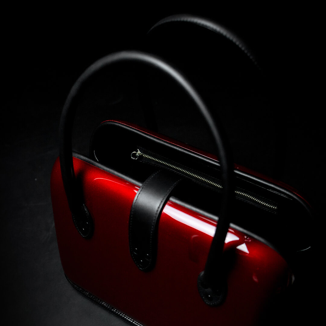Der eigens entwickelte Effektlack verleiht der Pearl Cherry, je nach Lichteinfall, eine ganz besondere Farbintensität. Durch eine Magnetschließe lässt sie sich leicht öffnen und schnell verschließen. Sichere Aufbewahrungsorte bieten ein flaches Innenfach für ein Smartphone mit zwei Kartenfächern sowie ein weiteres dezentes Fach mit Reißverschluss. Handvernähte Griffe, aufpolierte Bodengleiter komplettieren diese auffällige Tasche.